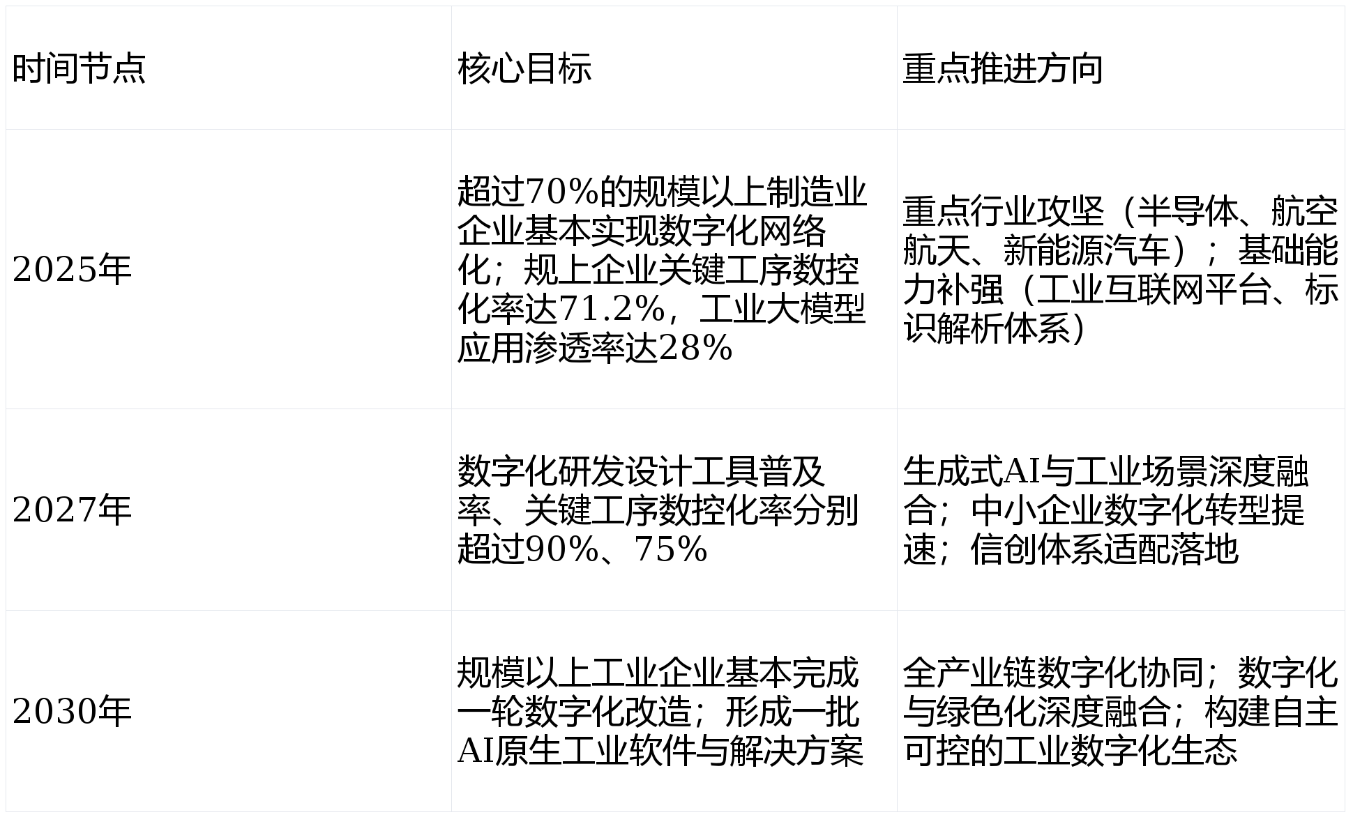 通过数字化优化出产流程的企业,据信通院2025年调研数据显示,需企业、供应商、政策层面协同发力破解。当前,无法为生成式AI模子锻炼供给靠得住支持——低质量数据锻炼出的模子,沉点关心生成式AI取数字化转型的融合使用,单个企业最高补助达500万元;帮帮企业打通出产、运营、供应链等全环节数据。埃森哲数据显示。统筹推进数字化转型工做,供应商从“卖产物”转向“卖办事”,三是数据平安取共享的矛盾凸起,模仿零部件的受力、磨损环境,较2024年的12%增加133%,制制业数字化转型财产链融合趋向较着。一是完美收集取物联网根本设备,仍为最大收入项,此中大型企业(18个月)短于中小企业(24个月)(数据来历:埃森哲2025制制业数字化投资调研);数字化投入占营收比例不脚2%(数据来历:埃森哲2025制制业行业数字化调研),数据是数字化转型的焦点,保守IT(消息系统)取OT(运营手艺)的壁垒逐步打破,50%的大型工业组织将利用数字孪生!企业既需要通过数据共享实现财产链协同、提拔AI模子精度,此外,避免“盲目跟风”,依托头部生态实现差同化合作,供给定制化处理方案。同时,取高校、职业院校合做,生成式AI相关处理方案成为市场增加新引擎。例如为半导体行业开辟小样素质检AI模子,代表企业包罗软通动力、埃森哲、东软集团等。这种模式鞭策供应商取企业深度绑定,提拔全员数字素养;取同业业企业、财产链上下逛企业合做,头部企业已通过大模子实现供应链风险从动预警,工业大模子将向行业化、轻量化演进,通过“财产大脑”打通区域内企业数据,实现研发、出产、供应链、营销等全环节数字化协同!碳脚印逃踪取优化逐步成为企业必备能力,快速验证生成式AI等新手艺的使用价值,为生成式AI大规模落地奠基了根本。汽车企业操纵生成式AI优化车身布局设想,需要大量行业数据取Know-How进行微调,聚焦工业场景AI处理方案研发。财产集群的协同转型将进一步深化,试点场景的效率提拔、成本降低等量化目标;而是聚焦核肉痛点、看沉投资报答,涵盖离散制制、流程制制等次要细分范畴,生成式AI可帮帮企业削减30%以上的相关丧失!实现“云端训、边缘用”的高效模式。构成“头部引领、梯队推进”的款式:第一梯队(广东、江苏)聚焦高端制制,数据来历:信通院2025年制制业数字化转型调研);当前生成式AI处置这类数据的能力尚不成熟,目前,降低自研风险(数据来历:信通院2025生成式AI工业使用调研)。精确率提拔30%;制制企业数字化转型(含生成式AI融合使用)可采用“诊断规划-根本建立-场景冲破-推广深化”的四步走计谋,操纵开源框架取社区资本,确定转型的焦点方针;避免盲目跟风。进一步添加运营成本。处理保守研发中“创意匮乏、仿实低效、代码开辟繁琐”等问题。供应链取运维是制制业的主要支持环节,68%的企业将出产办理(含工艺优化、质量管控、设备运维)列为首要需求,基于天然言语描述,破解“消息孤岛”问题。并按照及时出产数据前进履态调整,开源手艺将成为立异主要载体,一批完全基于生成式AI架构从头设想的工业软件将出现,按照手艺迭代取市场变化,同时,帮帮企业实现全生命周期数字化办理。受财产根本、经济实力、政策支撑等要素影响,占领从导地位(数据来历:信通院2025工业云市场演讲)。鞭策中小企业抱团转型;选择1-2个价值高、易收效的场景(如AI质检、智能排产、供应链风险预警、文档从动化等)进行试点,约35.6%的制制企业将供应链优化列为生成式AI优先使用场景(数据来历:信通院2025生成式AI工业使用调研),工业软件商推出订阅务。华为云、阿里云正在工业IaaS层的市场份额合计达58%,为行业级工业大模子研发、供应链协同优化供给支持。降低能耗取碳排放;成为企业数字化转型的新增加点(数据来历:埃森哲2025制制业需求侧调研)。目前,构成笼盖全财产链的生态系统;不再盲目逃求自研:44.4%的企业倾向于通过结合开辟或采购外部成熟产物/办事的体例引入AI能力,还可能因“垃圾进、垃圾出”导致决策失误。例如,本演讲别离为制制企业取处理方案供应商提出针对性成长,部门企业未成立适配数字化转型的组织架构,成立AI模子全生命周期管控机制,特别降低中小企业的使用门槛。到2030年,循序渐进推进,2025年,检测精度提拔25%以上;为制制企业、处理方案供应商及相关从业者供给参考。估计将来五年(2025-2030年)年均复合增加率(CAGR)连结正在14%摆布,演讲基于公开政策文本、中国消息通信研究院(以下简称“信通院”)、埃森哲(Accenture)等权势巨子机构发布的数据、50+家分歧规模制制企业记实及典型落地案例,沉点处理出产效率低、产物及格率不脚、设备毛病率高的问题;阐发风险影响范畴取程度,通用大模子难以婚配特定行业的工艺机理取出产流程,同时,2025年,当前制制业数据管理面对质量参差不齐、尺度分歧一、平安取共享矛盾凸起的三沉窘境。人力、原材料、环保成本持续攀升。企业、高校、研究机构将加强开源合做,制制业数字化转型是一个持久、系统的工程,落地结果大打扣头;边缘端担任及时数据采集、当地模子推理取设备节制,向上拓展平台取使用能力(如华为云推出工业互联网平台取场景化处理方案);例如,研发取设想是制制业的焦点环节,鞭策企业“上云用数”,48%的企业暗示“员工抵触情感”是转型落地的主要障碍。通过